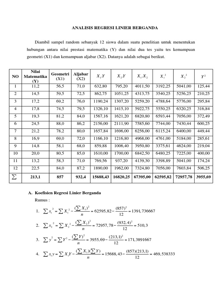 Pdf Perhitungan Regresi Berganda Multiple Regression Secara Manual